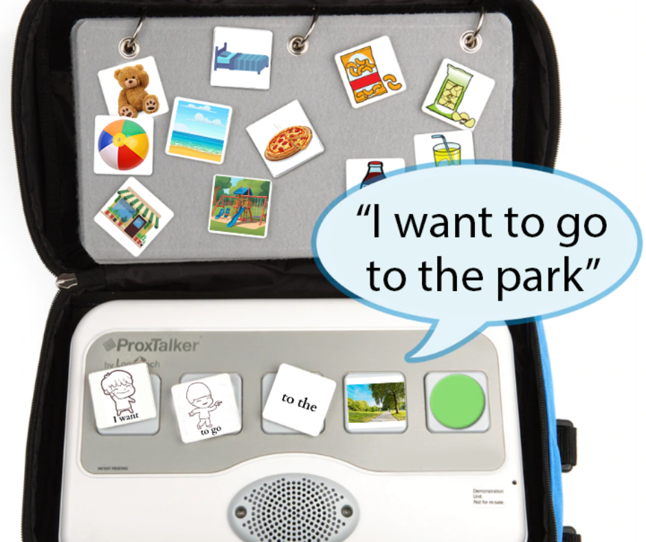 The Logan®ProxTalker® is the most advanced and adaptable recorded speech communication device available. It uses RFID (radio frequency identification) technology to enable independent verbal picture communication for non-verbal people of all ages. This technology allows you to simply place any photo, symbol, or object on a sound tag card and have a voice! To trigger voice output place your sound tag card on any one of the 5 buttons and push. Now silent picture users have easy access to voice output!