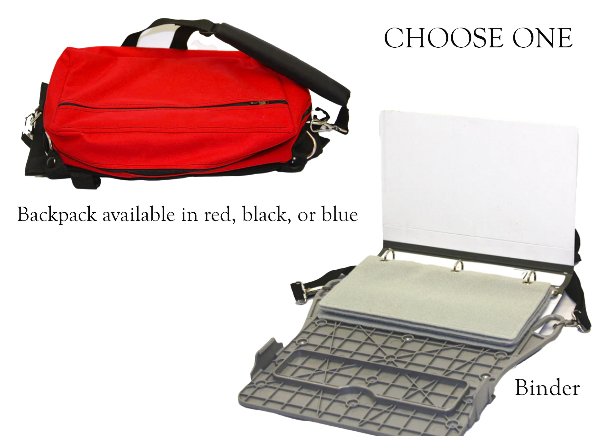 - portable in back pack or wheelchair/wall mountable in binder format
