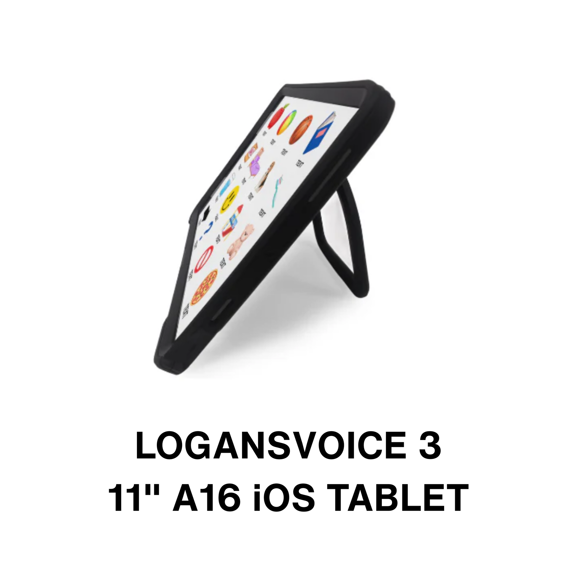 The LogansVoice 3 Communication Bundle includes a 11" A16 iOS Tablet, 256GB Wi-Fi only, LogansVoice case, plus a 3 year warranty. Just add your own app! LogansVoice Case features: